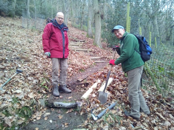 Not quite on the scale of Russia, but impressive nevertheless, last week’s work party not only repaired a few rotten steps on the original ‘Stairway to Heaven’, but completed the second flight that connects with them via Henry’s Quillet.